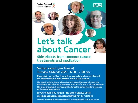 The East of England Cancer Alliance Patient Partnership Group would like to invite you to attend their online events.